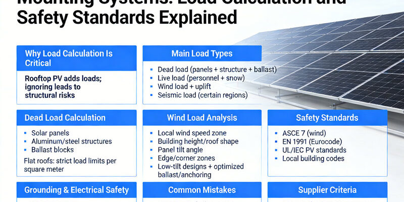 This article explains load calculation principles and safety standards for rooftop solar mounting systems in a clear, engineering-focused way.