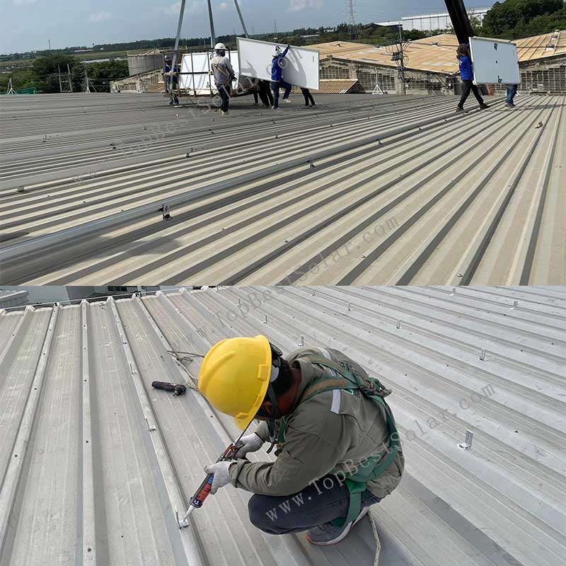 Brief Descriptions: Solar Mounting System –solar roof mounting with L foot brackets Item type: Solar Panel Roof Mounting kits Type: SPC-RF-IK08-DT Installation Site: Metal Roof Profile Material: Aluminum Alloy Fasten Parts Stainless Steel PV Modules: Frameless or Framed panel Wind Load: 60m/s Snow Load: 1.4KN/M2 Standards: AS/NZS 1170 DIN 1055 GB50009-2012 IBC2009 TUV JIS C 8955: 2011 International Building Code IBC 2009 California Building Code CBC 2010 Warranty 10 years Designed Lifespan 25 years Packing Details: Inner: Bubble bag + inner box + Carton Outer: Wooden Box, Steel Pallet, MDF, etc - FAQ